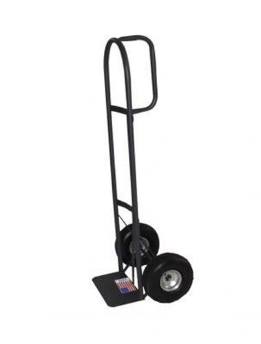 Wide, air-filled 4.10/3.50-4 tubeless tires and loop handle make it easier for you to get up curbs, over threshholds and through doorways. Rugged hand truck is 51in. high for a bigger payload. Built of heavy duty 1in. steel tubing with welded frame members. Steel toe plate measures 14 1/4in. wide and 8 3/4in. deep. Hand truck is 21 1/4in. wide overall. U.S.A. Cannot ship parcel post. Load Capacity (lbs.): 800, Height (in.): 51, Overall Width (in.): 21 1/4, Toe Plate Width (in.): 14 1/4, Toe Plate Depth (in.): 8 3/4, Tire Type: Pneumatic